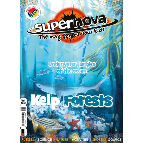 In this issue, Supernova is diving deep… right into the swaying, sun-dappled world of kelp forests! At first glance, kelp might just look like seaweed waving in the water. But when you take a closer look, you’ll see a whole bustling city under the sea! Tiny fish dart between the leaves, sea otters use the kelp like cozy blankets, and crabs scuttle along the ocean floor. Every creature has a part to play, and together, they create a home that’s strong, beautiful, and full of life. And if you look closely, you’ll see that kelp forests are more than just beautiful – they’re busy, balanced communities.